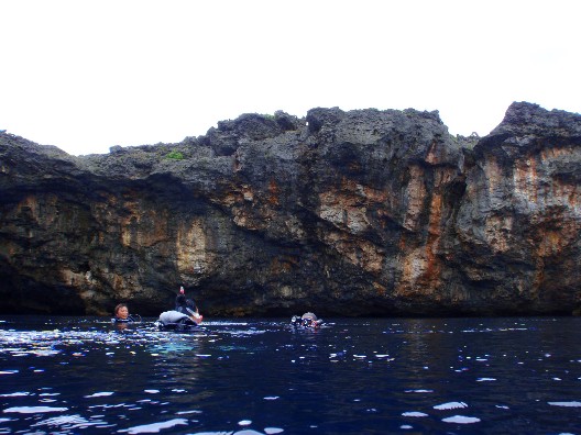 まずは宮古島の地形ポイントを代表する「通り池」観光名所になっている場所で、外海と繋がっている珍しいポイントです!!淡水と混ざりあい視界はモヤモヤって感じです。